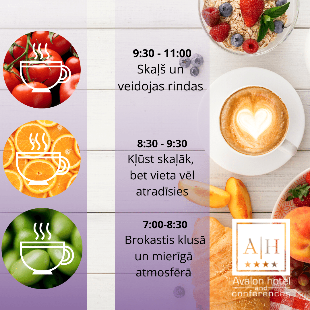 Klondaika savu rītu ar siltām un veselīgām brokastīm mūsu AVALON restorānā, kas visu dienu piedāvā ēdienus no dažādām pasaules virtuvēm plašā klāstā.